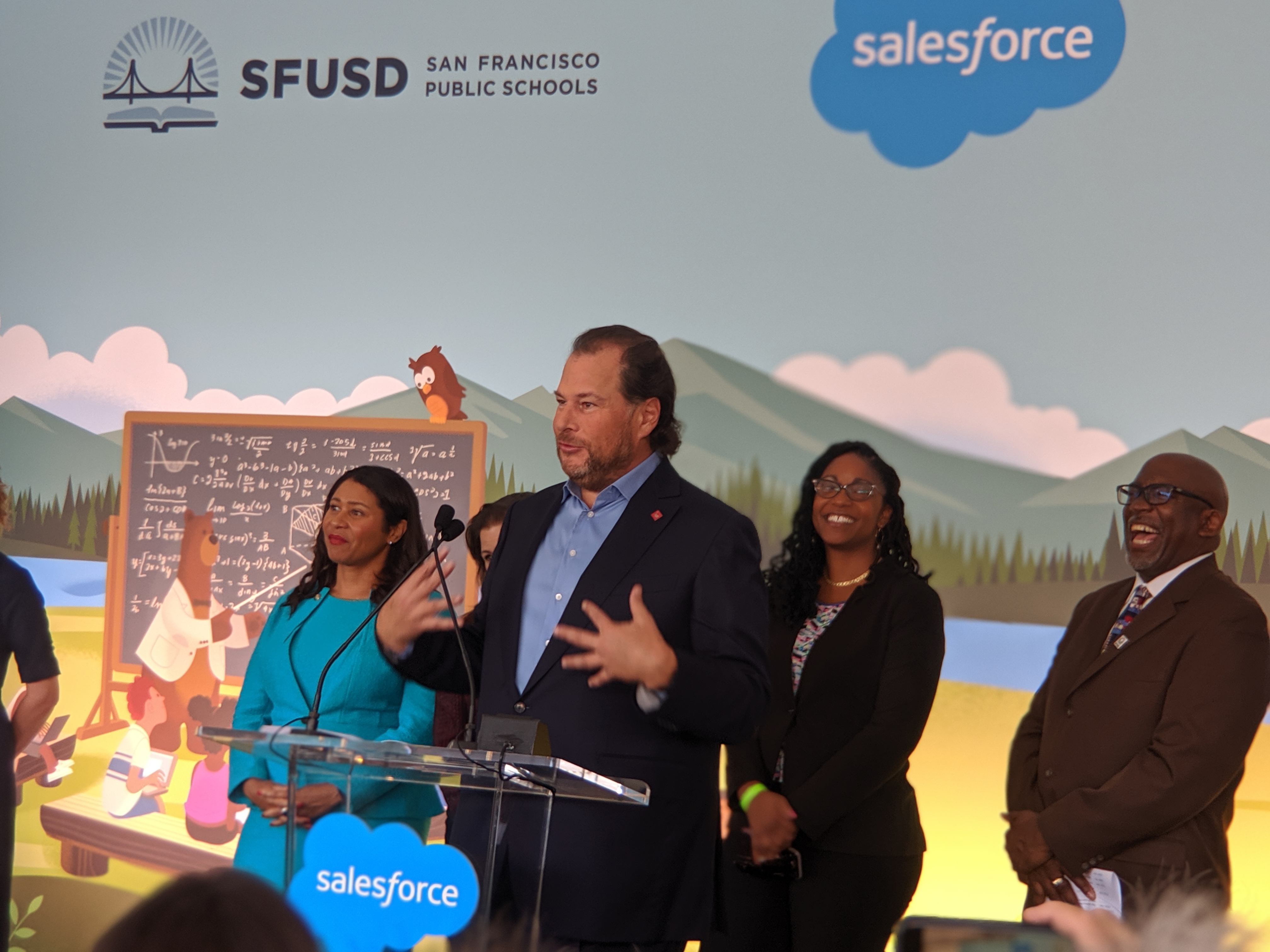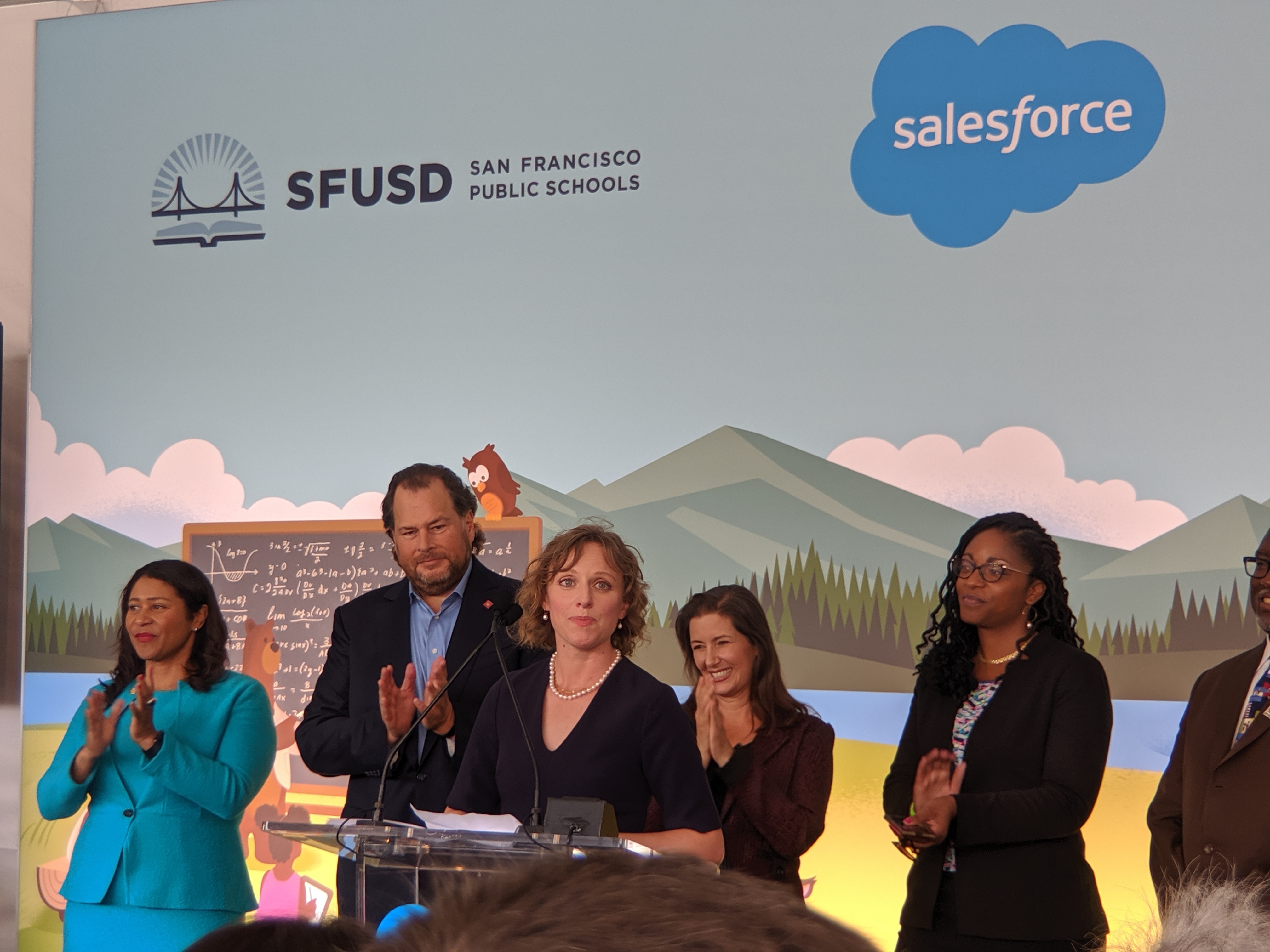 Let’s be honest, this whole summit was pretty inspiring, but on top of everything, I had the honor and privilege of being invited to a special press conference, where I got to meet Marc Benioff and see Salesforce’s 1-1-1 model in action. I, and about 20 other Trailblazers, loaded a bus bound for Presidio Middle School. When we arrived, there was a huge party going on! The school had just completed a new playground, funded by Salesforce grants. There were kids everywhere doing awesome activities all led by Salesforce volunteers. There was bubble science, a VR experience, giant Jenga, a dance party, a photo booth, and honestly I don’t even know what else because I didn’t have time to go to each thing. Oh! There were Legos. I remember the Legos. It was so fun to interact with the kids and the Salesforce volunteers and really see how this company is transforming communities first hand. After a while, there was a press conference where Marc Benioff pledged $17 million dollars to the San Francisco and Oakland School Districts, part of a $100 million promise from Salesforce to help fund education. I also learned that Salesforce has actually adopted 100 schools all over the world. How cool is that? Each executive at Salesforce has to adopt a school – that is so neat. And a great example of putting your money where your mouth is. At the end of the event, Marc actually took the time to come shake all of our hands and took a picture with us – definitely a highlight of the trip! This experience alone was worth the trek to San Francisco. I had the honor to sit just a few feet away while Marc Benioff, the mayors of San Francisco and Oakland, and the San Francisco and Oakland School Superintendents talked about the importance of education and giving back to our communities. It was a once in a lifetime opportunity and I feel so blessed to have been there.