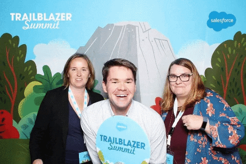 And boy did I ever. I met so many amazing men and women at this event, all blazing trails in their own ways, wanting to make the world a better place. I was so lucky to have sat down for breakfast on Thursday morning in front of Aimee Hickman. We talked all morning and then were basically joined at the hip for the rest of the summit. Aimee is in the process of transitioning from a career in higher education to a position in the Salesforce ecosystem. She’s a graduate of the new Trailblazer Mentorship program, just got her admin certification, and has reach Ranger status on Trailhead. Not bad for starting just over a year ago! Aimee is looking for the perfect Salesforce opportunity… so if you’re hiring, hire her! I also met Stephanie Smith, a #VetForce graduate, cyclist, and consultant. Stephanie is also a Ranger and looking for that next great opportunity. And then there was Collin Zimmerman, who I spent basically 3 hours in a photobooth with… Chris Emmett who traveled to the event all the way from London, and SO MANY MORE Trailblazers. The summit was small enough that we truly got the opportunity for networking and bonding.