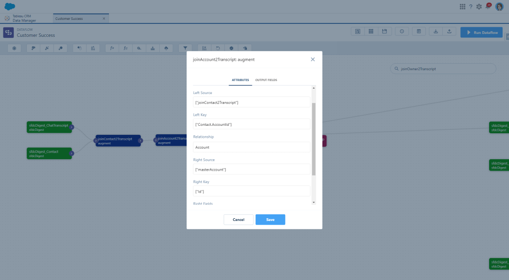 And even though you can fill the AccountId on the Chat Transcript, I’m not, so I’m also going to Augment Account data based on the Contact’s AccountId that I just joined.