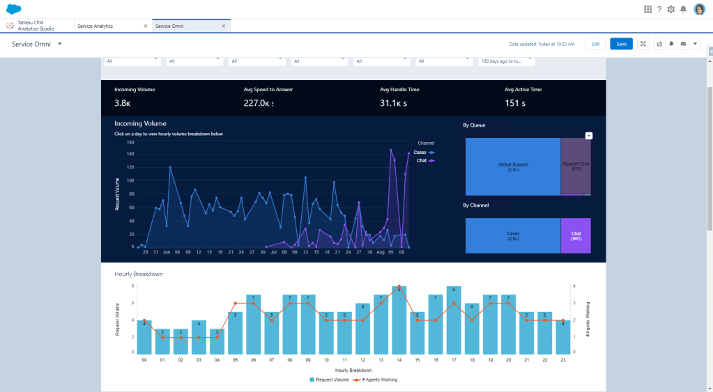Yes, I’m also currently building out my own Omni-Channel and Salesforce Chat dashboards, but that doesn’t mean I’m not drawing inspiration from things that I already have. One of the greatest features of Tableau CRM is the App Templates that Salesforce gives you, and they give us more and more with each new release. In the Service Analytics App Template, you actually get a preconfigured Omni dashboard AND a preconfigured Chat dashboard (along with 16 other preconfigured dashboards!) As always, you can learn more about the template and how to set it up by following this Trailhead Module. But let’s check this out together and see what we actually get, and what inspiration we can draw from it!