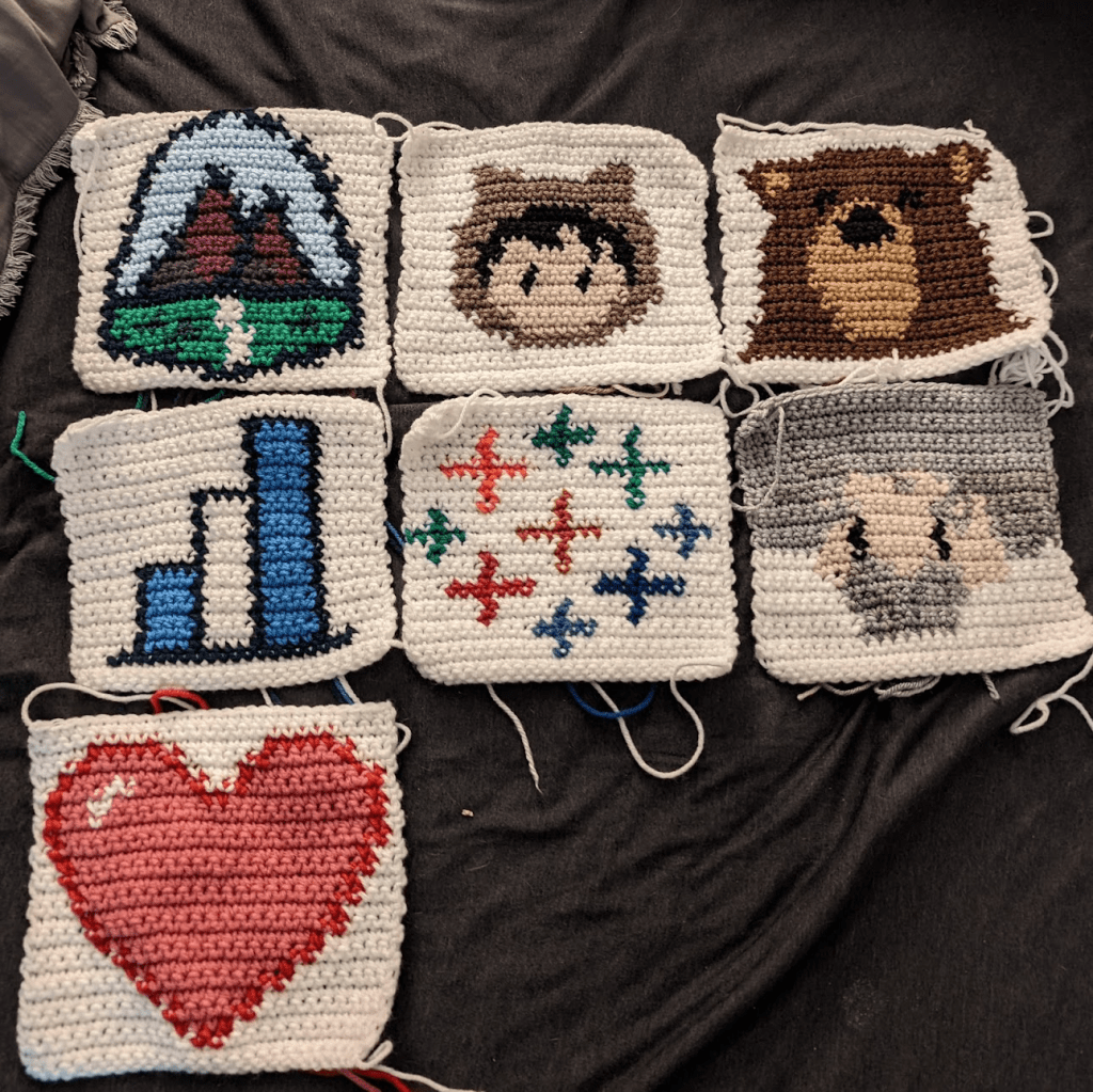 I crochet this all in single crochet, but you could also make it a C2C square, do like a puff stitch, or… just make it your own! Would love to see the finished product if you make one 😍.